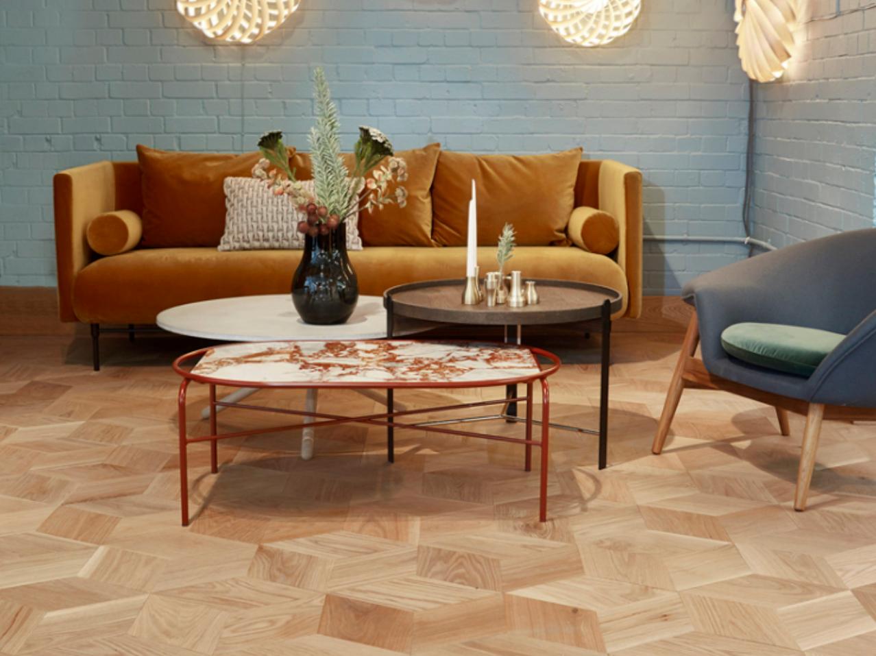 Last week we showed off our Hexparket flooring alongside a whole host of Danish design brands at London Design Fair. The Danish Country Pavilion was initiated by the Embassy of Denmark in London, who curated a real-life Danish Living Room full of furniture, lighting, homeware and sound, with our Hexparket floor forming the backdrop.