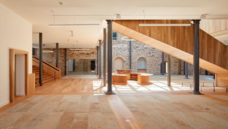 David Burne, Senior Architect at Purcell and the project lead said: “Solid hardwood flooring was chosen as it is a sustainable, natural product, with a long life and low maintenance requirements. The Nordic Oak was selected due to its warm appearance and light colour characteristics which complement the tones of the historic granite slabs adjacent, whilst enhancing the natural illumination of the main exhibition space and visitor reception area.”