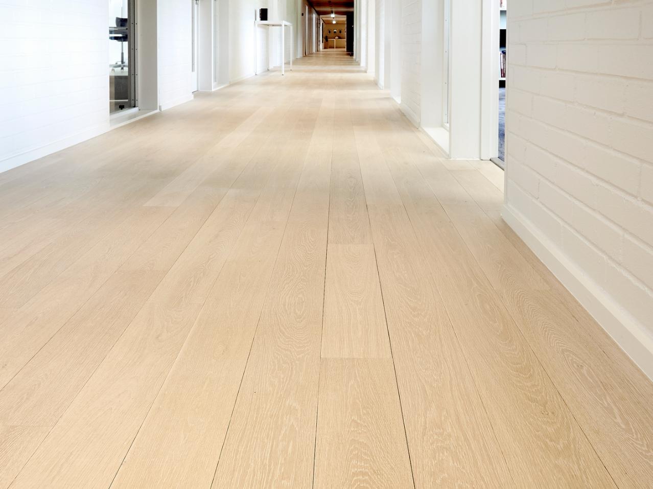 A light-coloured floor helps enhance lighting levels, reducing the need for artificial light and therefore saves energy. In contrast to a dark surface, which absorbs and holds heat and subsequently releases it back into the room, a pale floor will not contribute to overheating, reducing the need for air conditioning systems. With a perfectly smooth surface, a solid wood floor from Junckers cannot harbour dust or mites. As an all-natural material, wood contributes to an even and balanced indoor climate as it helps maintain temperature in a room and reduces static from any electrical equipment. All Junckers’ floors hold the Danish Indoor Climate label and have undergone extensive degassing and odour testing to ensure there are no chemical substances in the flooring.