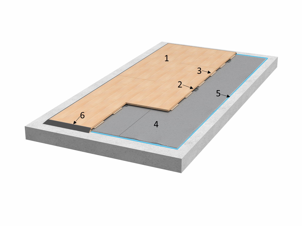 5. Moisture barrier on concrete, Junckers 0.20 mm PE membrane